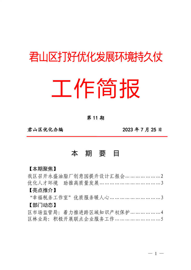 君山区打好优化发展环境持久仗工作简报 (第11期)