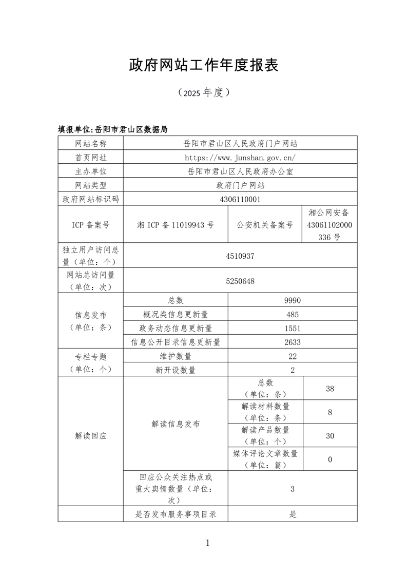 2025年度君山区政府网站工作年度报表