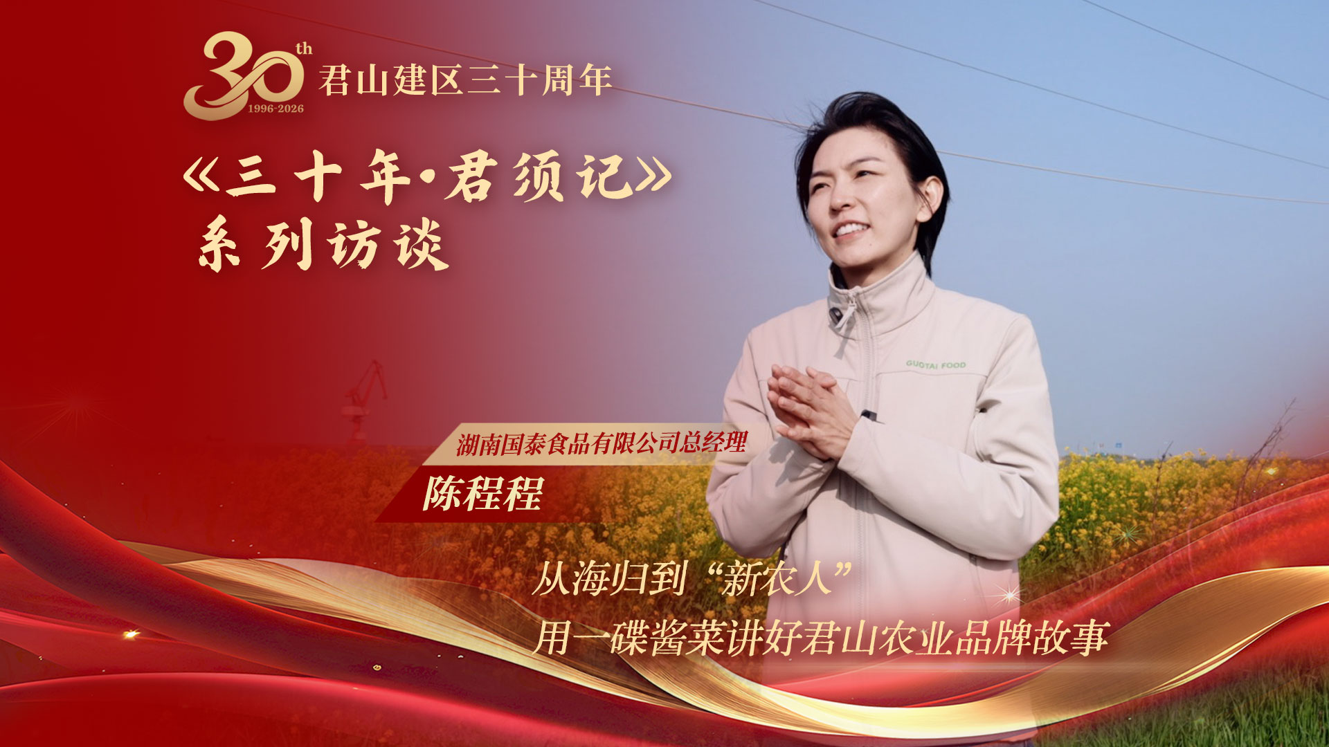 三十载耕耘,硕果累累;一江碧水,见证君山蝶变;高质量发展,步履铿锵;祝福君山区三十华诞,未来更精彩!