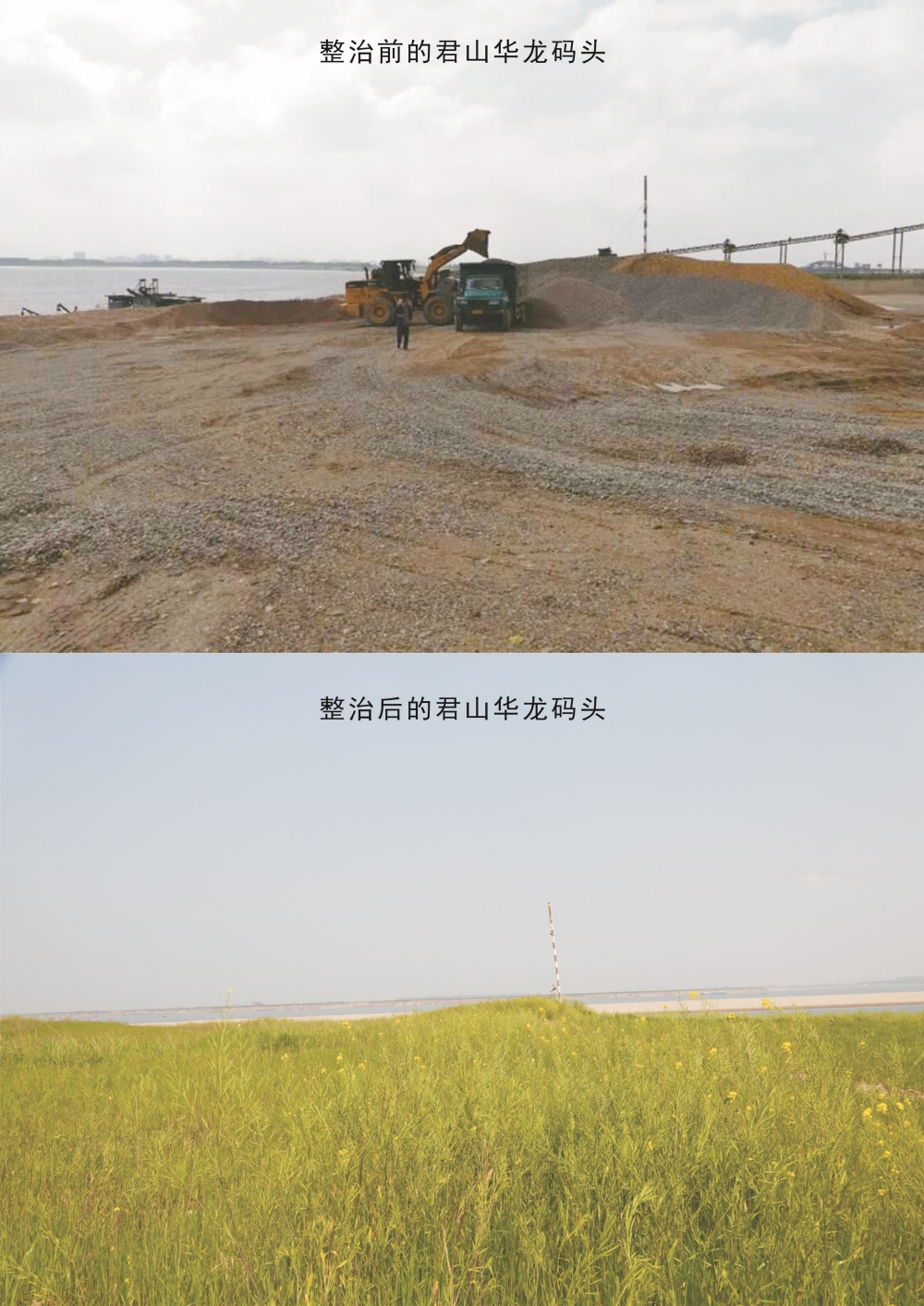 建区之初,受“靠山吃山、傍水吃水”传统发展模式影响,君山境内长江岸线饱受非法采砂、过度捕捞、码头无序开发之痛。42公里长江岸线上曾密布非法码头42处,年砂石产出超40万吨的华龙码头机器轰鸣、尘土飞扬,江豚鱼禽四散而逃;洞庭湖沿线矮围围网遍布、欧美黑杨无序种植,农业面源污染、工业排污叠加,让江湖生态持续承压,鱼类资源逐年衰退,珍稀物种踪迹难觅。