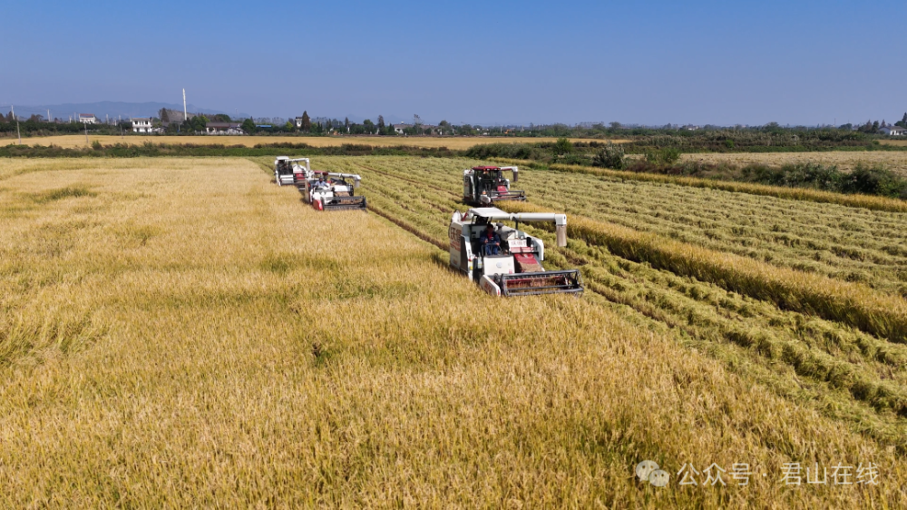 君山区始终坚守粮食安全底线,严格落实“藏粮于地、藏粮于技”战略,坚决守住永久基本农田红线,粮食年产量稳定在14.95万吨以上,稳稳扛起“洞庭粮仓”的责任担当。如今,漫步君山大地,钱粮湖镇连片高标准农田里,水稻郁郁葱葱;良心堡镇稻虾基地中,田埂整齐、沟渠纵横,一幅“田美粮丰”的画卷在洞庭湖畔徐徐展开。