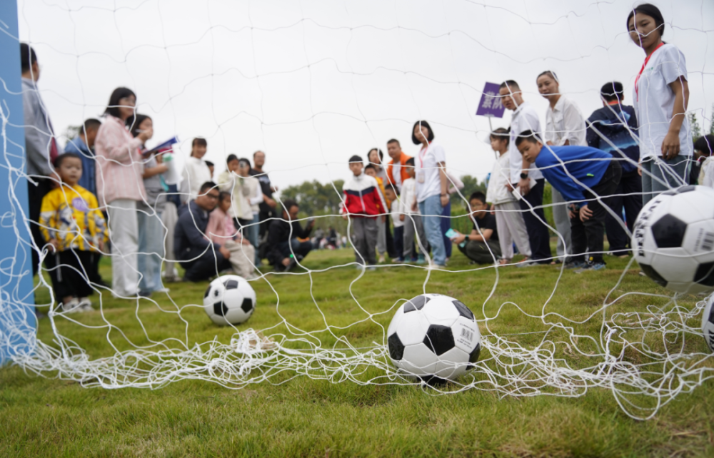 “我要踢湘超”趣味足球赛成为了小朋友们大展身手的绿茵舞台。每个孩子都有5次射门机会,他们一个个摩拳擦掌,轮流在点球点前站定,瞄准球门,全力施射。
