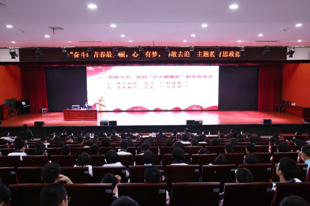 学校图书馆报告厅,洋溢着青春的气息与浓厚的学习氛围,老师与学生们沉浸在雷欣书记授课讲话中,同学们认真地聆听,不时拿着笔本详细记录,朝气蓬勃的脸庞,带着对知识孜孜不倦地渴求。