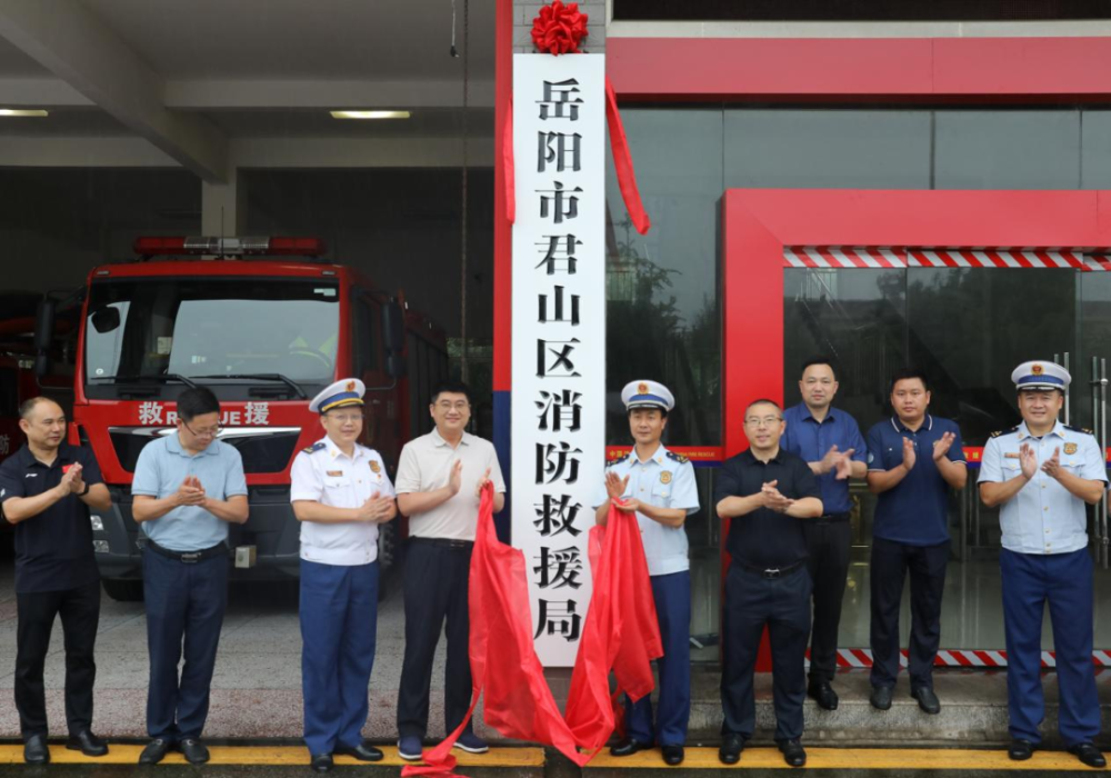 6月28日,岳阳市君山区消防救援局挂牌仪式在君山区消防救援大队举行,区委常委、常务副区长沈澍出席,区消防救援大队、区委组织部、区政府办等相关单位负责人参加。