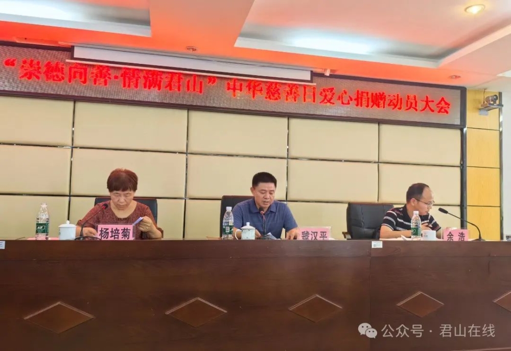君山区举行“崇德向善·情满君山”中华慈善日爱心捐赠动员大会暨爱心企业授牌仪式