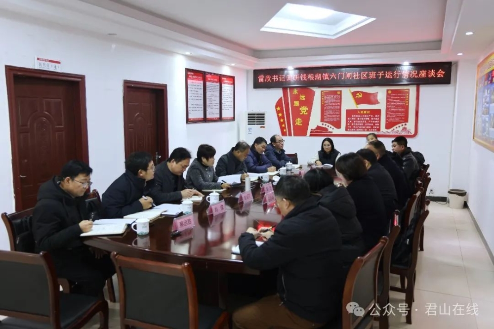 △雷欣调研钱粮湖镇六门闸社区班子运行情况座谈会。竺芳梓 摄