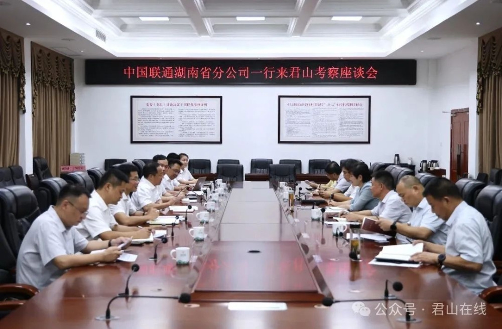 △7月16日,中国联通湖南省分公司一行来君山考察座谈会召开。竺芳梓 摄