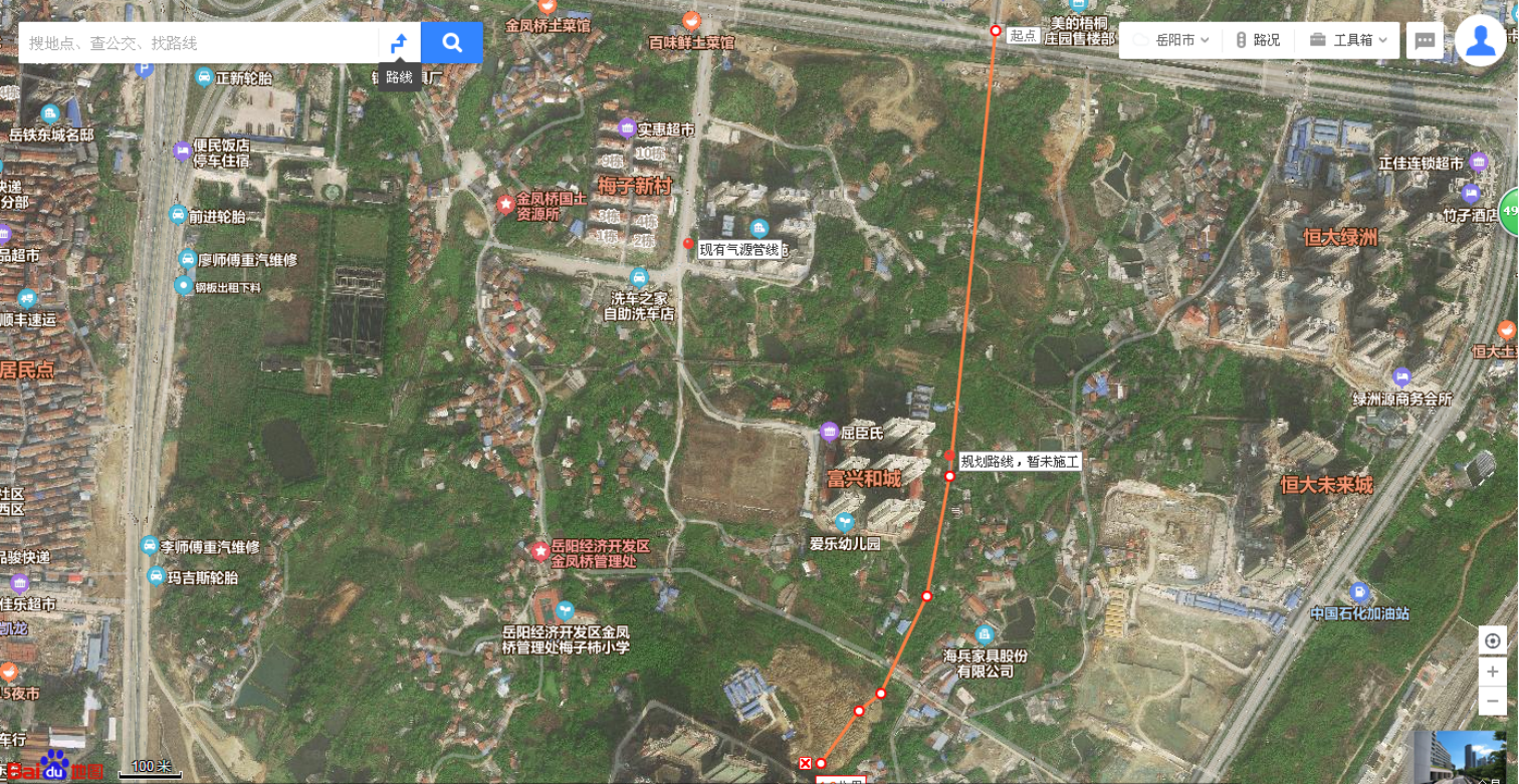 自富兴和城小区验收交房开始,岳阳华润燃气公司就已与该小区开发商协商燃气管线敷设工作。原计划随进入富兴和城的小路敷设临时管线,为小区市民提供天然气气源,但未能获得开发商同意,该处二期后续仍处于施工建设中。因而,天然气管道建设至目前都无法开工。