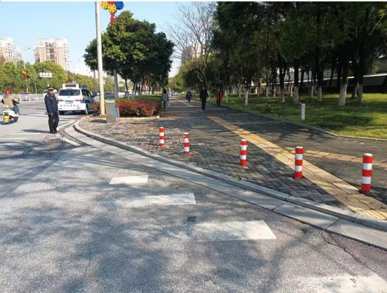 经我大队洞庭大道中队队员现场查看,该处已由市政部门规范设置隔离桩。但由于部分路段马路边缘石较矮,导致部分车辆从此处驶入人行道。下一步,我大队将组织执法队员加强对该处违停车辆的管理。