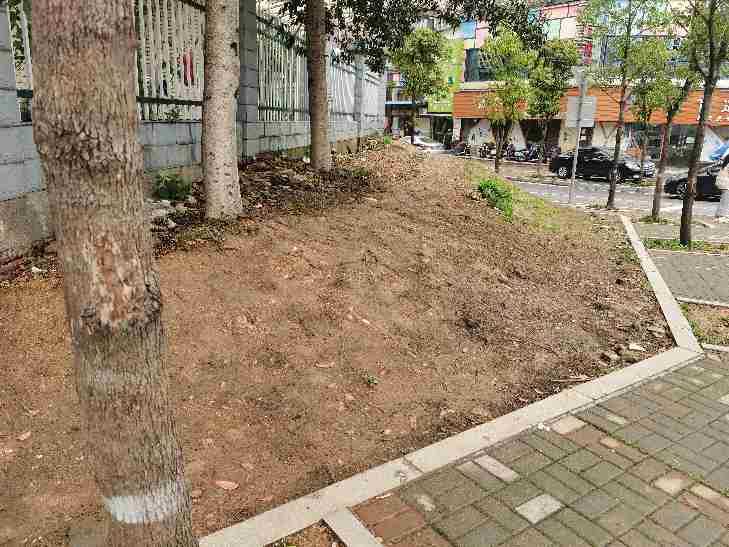 我部于2023年4月12日上午8点已安排绿化维护人员进行了现场查勘。按照您的来信内容,结合现场情况,我部将迅速清理该地段的杂草,并撒上草籽,已解决泥土裸露现象。