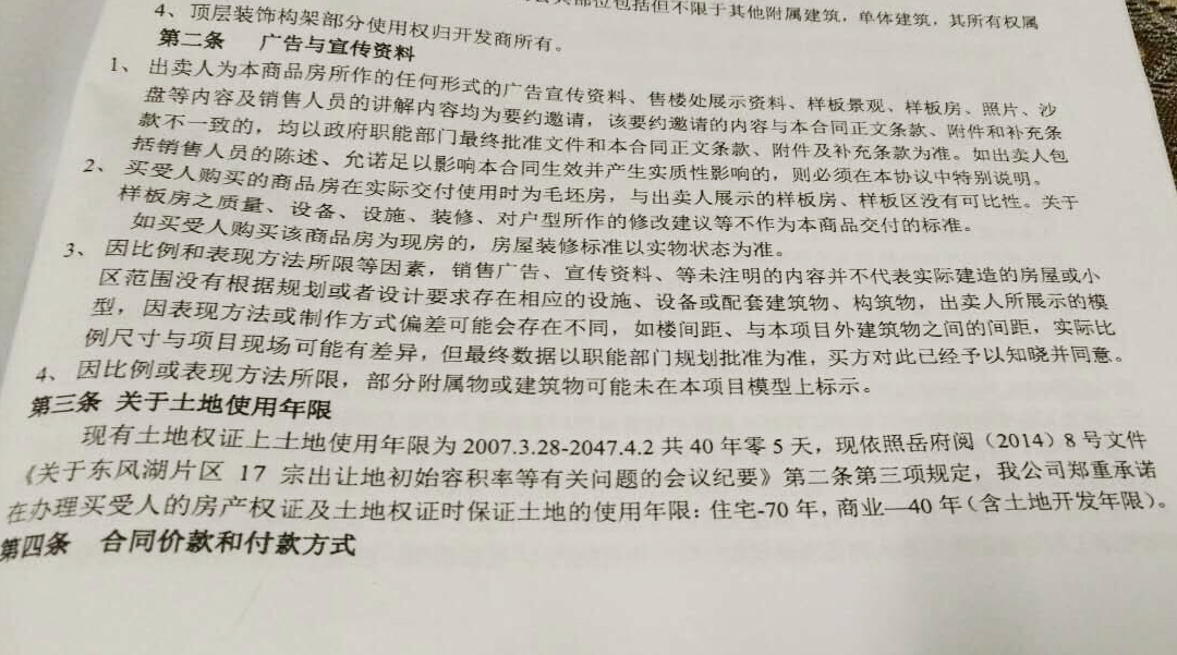 | 内容: | 尊敬的市领导:您好!我是一位圣大珑庭的业主,因6月底要交房了,现在就土地权限的问题有点问题想咨询下。土地证号为岳市国用(2007)第K038号,合同上注明使用年限为40年,但在合同补充协议上,开发商承诺,住宅在房产证和土地使用证上的期限为70年,商用为40年,而依据是 岳府阅(2014)8号文件《关于东风湖片区17宗出让土地初始容积率等有关问题的会议纪要》第二条第三条规定。不知道这份文件文件有没有提到土地使用年限的问题。如有,那么开发商承诺的70年期限能否实现。如没有,那么开发商是不是存在欺诈行为。期盼您的回复!谢谢! |