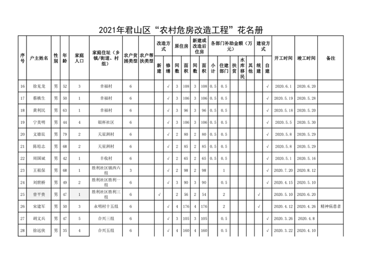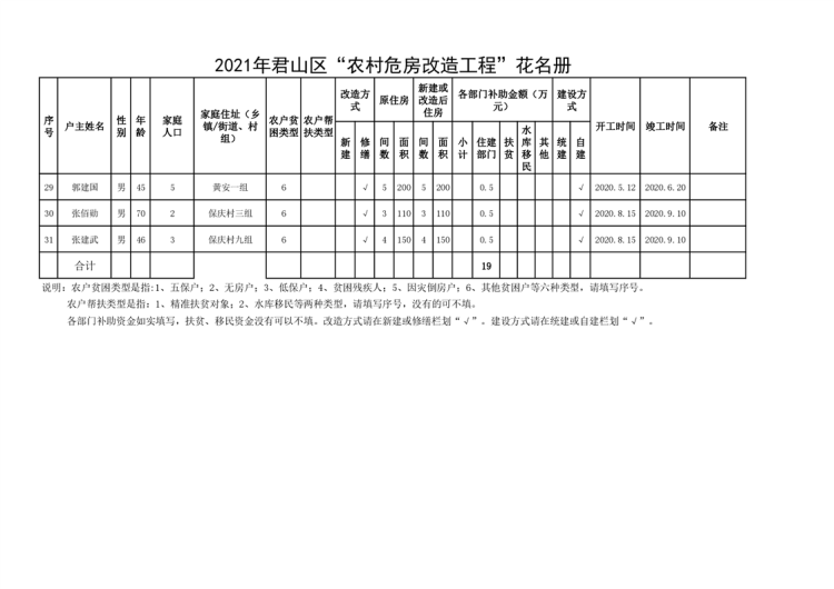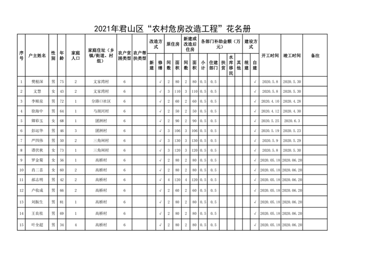 | 公开依据 | 《预算法》、《政府信息公开条例》、《住房城乡建设部 财政部关于印发农村危房改造脱贫攻坚三年行动方案的通知》、《住房城乡建设部 财政部 国务院扶贫办关于加强和完善建档立卡贫困户等重点对象农村危房改造若干问题的通知》等 | ||