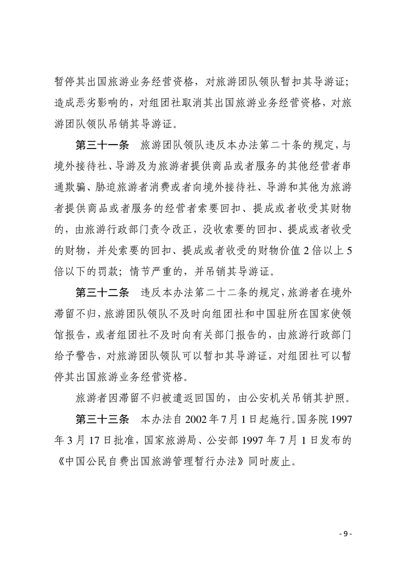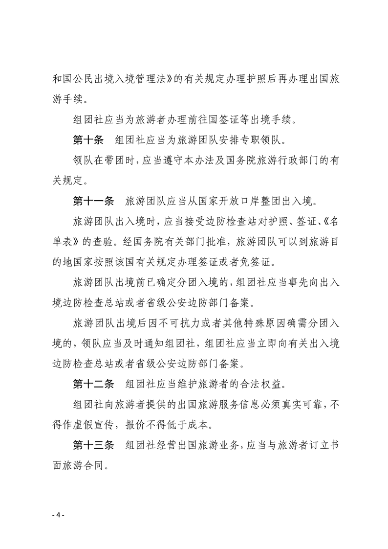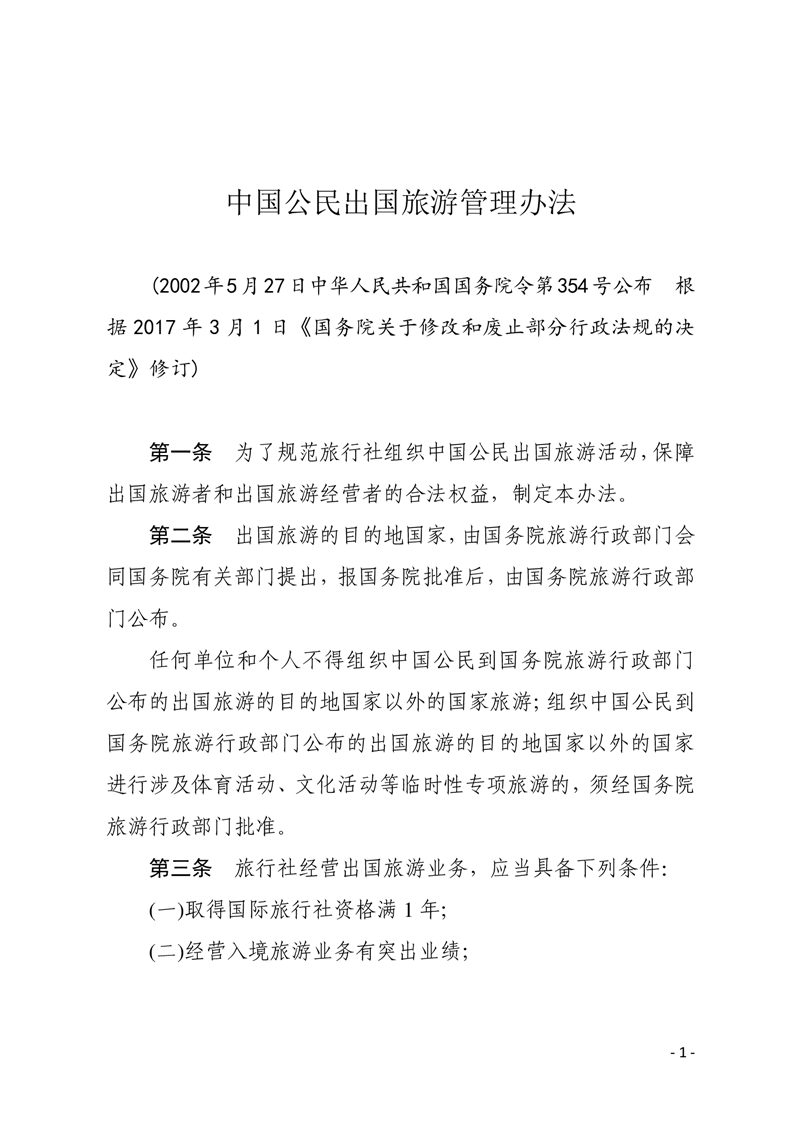 中国公民出国旅游管理办法