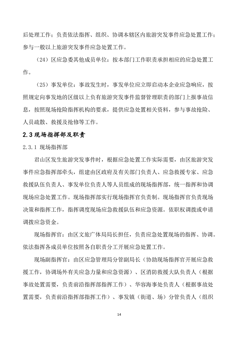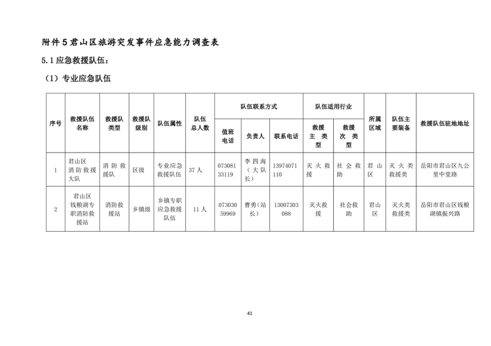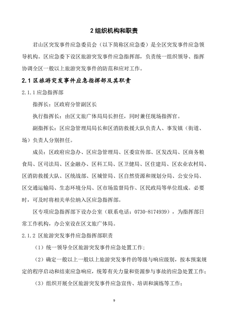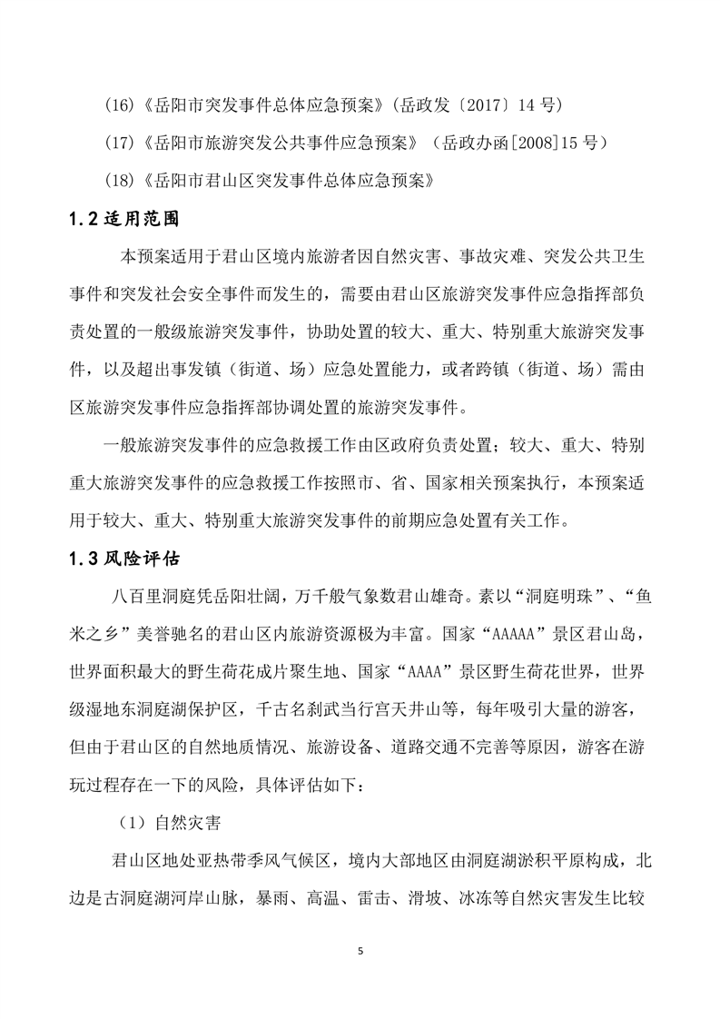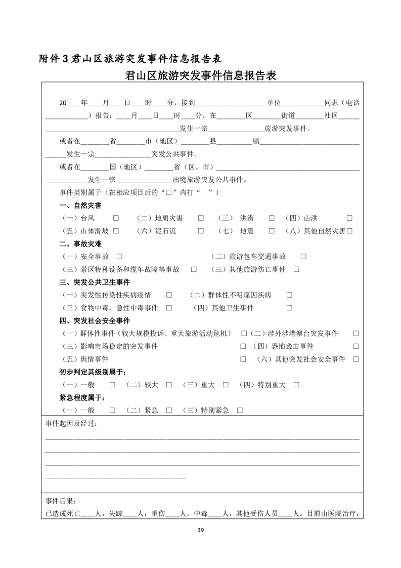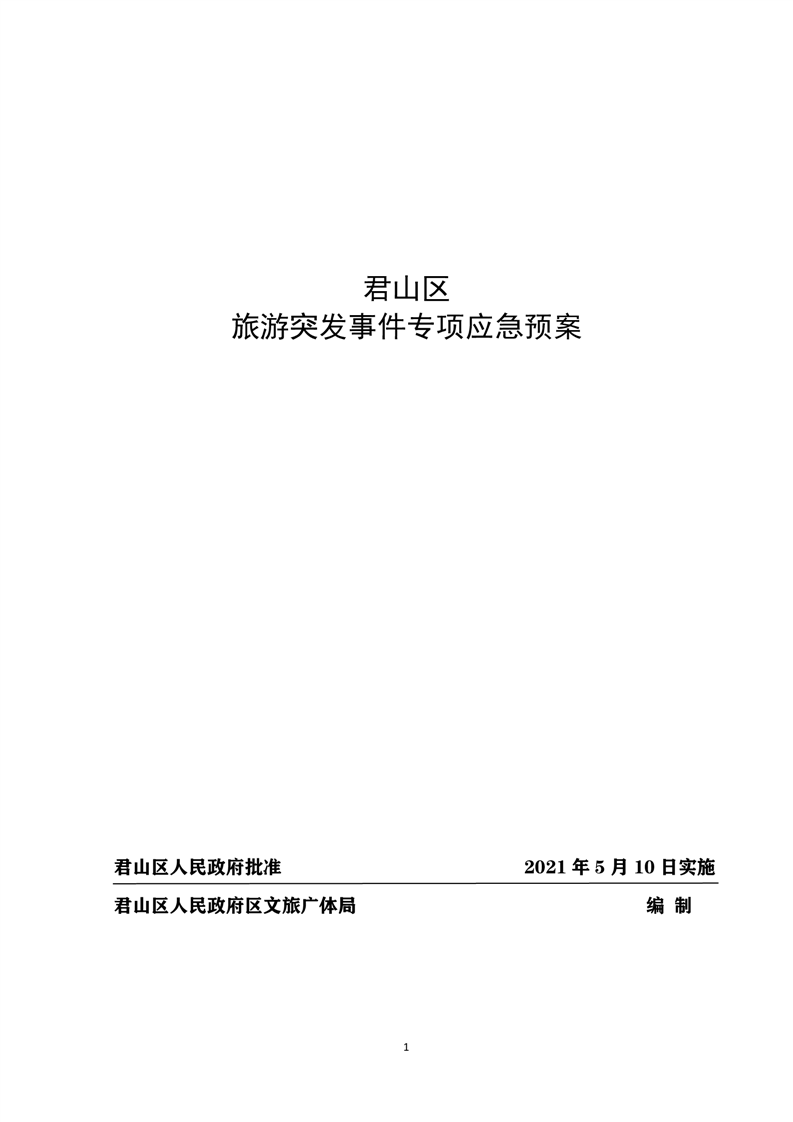 君山区旅游突发事件专项应急预案
