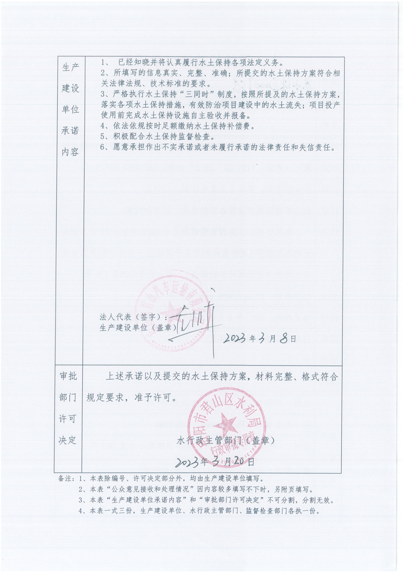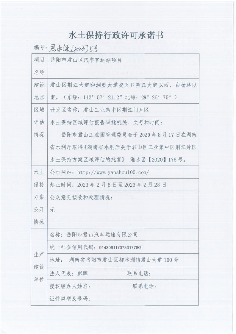 君山区水利局水土保持行政许可承诺书 君水保[2023]5号