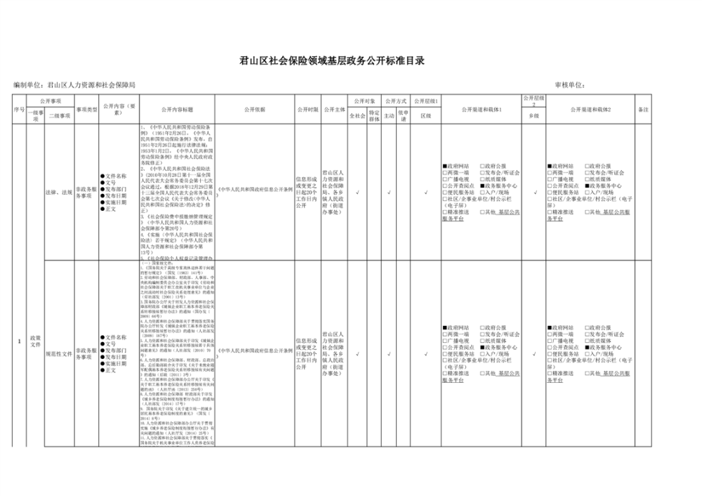 君山区社会保险领域基层政务公开标准目录(2025年)