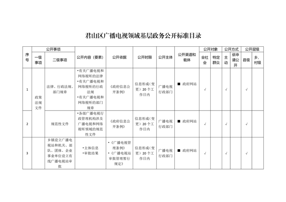 君山区广播电视领域基层政务公开标准目录(2025年)